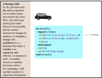 “turn right y degrees.” Very young children can play at moving the turtle, but teenagers with some knowledge of mathematics are better able to study “turtle geometry” and understand how “recursive” scripts let the turtle draw fractals.